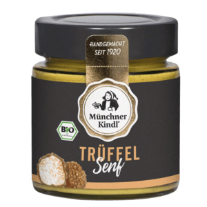Dies ist eine Beschreibung von einem edlen Senf mit einem nussigen Trüffelgeschmack und einer leichten Schärfe. Der cremige Senf passt ausgezeichnet zu Fleisch- und Nudelgerichten. Ein Esslöffel dieses würzigen Senfs rundet Spaghetti Carbonara sehr gut ab. Er verfeinert Suppen durch sein natürliches Trüffelaroma hervorragend. Wie wäre es mit einer Steinpilzsuppe mit Trüffelsahne oder einer bodenständigen Kartoffel-Pastinaken-Suppe mit einer feinen Trüffelnote? Dieser Senf ist in der kreativen Küche vielseitig einsetzbar und bereichert jedes weihnachtliche Festessen, ob Raclette oder Festtagsbraten.